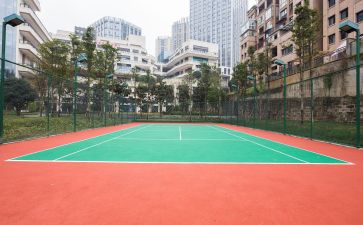 弹性球场面层厚度3.0mm-8mm,适用于沥青基层或高质量的混凝土基层